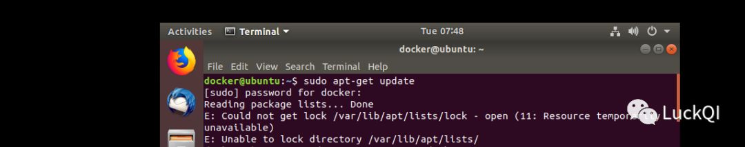 系统安装好之后会先进行sudo apt-get update进行包内信息 更新,如果出现锁的信息