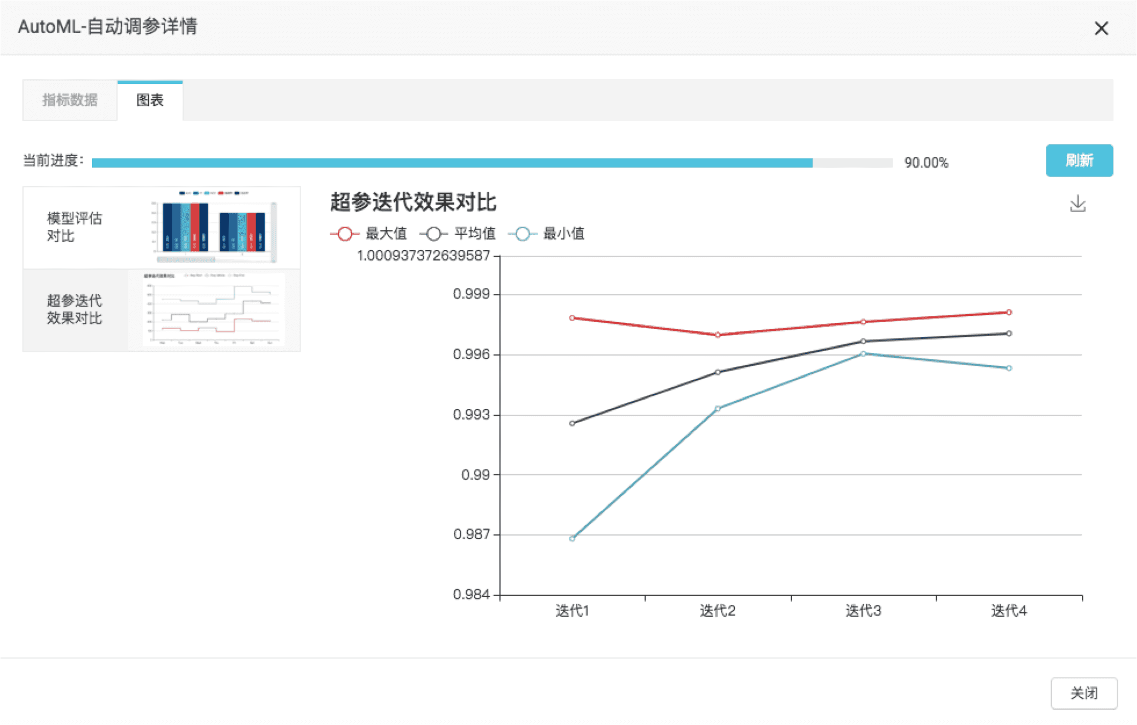 PAI进化式调参迭代效果图,可以清楚地看到每一轮迭代对于效果的提升: