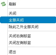 主界面左侧为导航菜单,右侧为工作区,选择左侧导航菜单中相应的导航项,即可打开对应的功能列表。右侧的工作区,打开的页面我们可以通过右键菜单做相应的关闭操作,如下图所示: