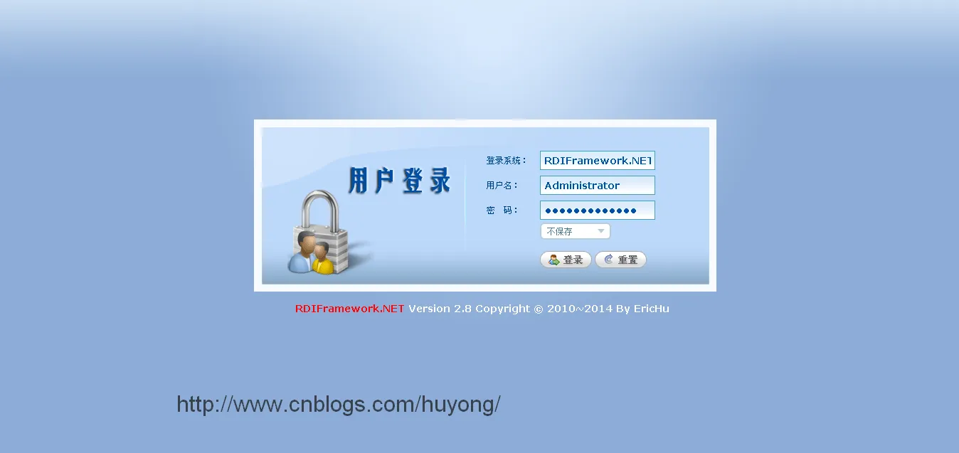 把RDIFramework.NET成功部署到IIS上后(部署的方法可参考相关文章),进入登录界面,如下图所示: