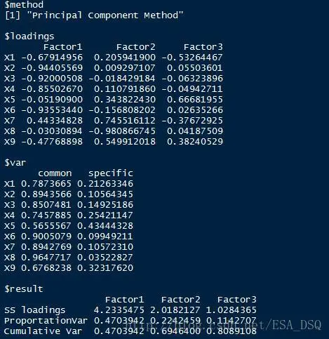 第二个函数就是自编函数实现的主成分分析方法做因子分析(具体函数代码后面给出)。