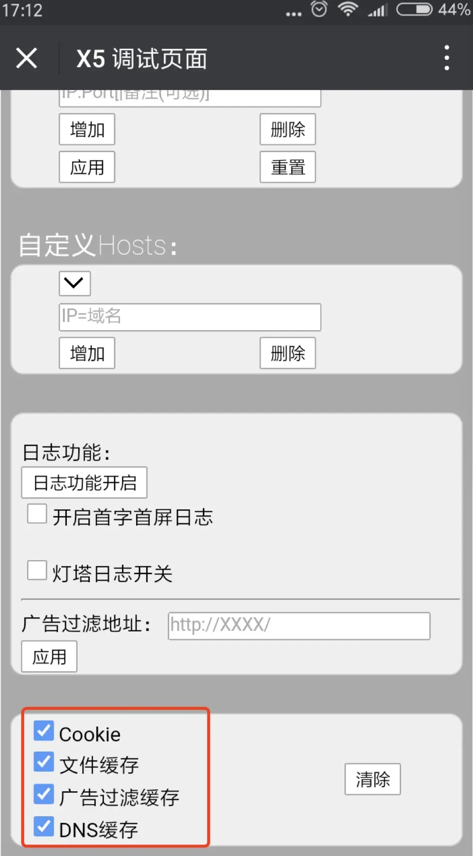 Android清除缓存随便打开一个聊天窗口,输入debugx5.qq.com 并发送