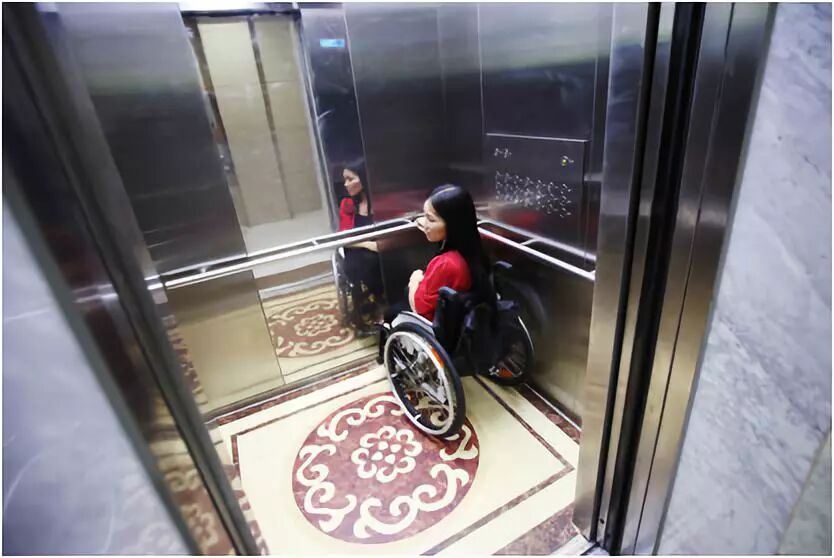 2018年7月的一天,刘香在河南省残联内搭乘电梯。11个月前,她成为阿里巴巴「云客服」,目前她正参加当地残联举办的提高班进修。