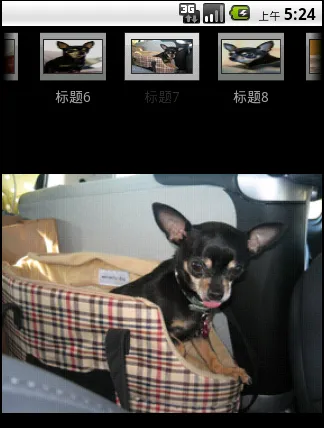 在这里图片我用的是API中的图片。先说下这个图片浏览的功能吧,首先,它要实现图片的切换,当点击上面的小图时,下方会出现对象的大图,其次就是实现上图中最上面的样式,即一个图片和一个文本。下来我们还要实现起始位置居中,滑动小图的速率的控制,最上面小图的无限循环等功能。下面我就将具体实现代码附下,供大家参考。