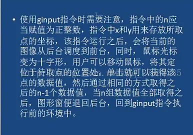[x,y]=ginput(n):其功能为鼠标从二维图像中获得n个坐标(x,y)