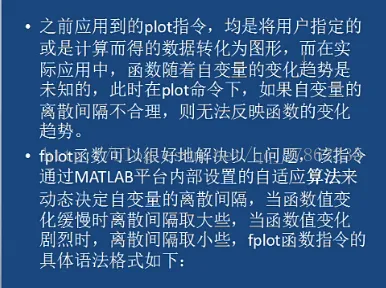 (3)fplot(fun,limits,tol,linspace):tol表示在规定的相对误差内绘制fun(),默认值是2e-3,