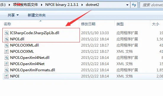 ③先去官网:http://npoi.codeplex.com/ 下载需要引入dll(可以选择.net2.0或者.net4.0的dll),然后在网站中添加引用。[因为我的项目就用到了excel导出,所以只添加了这两个dll]
