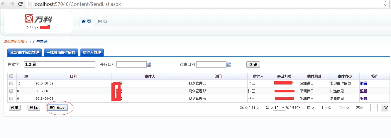 需求:在这个界面点击导出,导出页面数据,苦于没有做过webfrom项目,弄了半天还是没想到原生态的好方法,所以在网上看了下有没有导出的好例子,结果发现有人推荐使用Npoi,抱着强烈的好奇心,就去查了下这个东东,发现果然强大,哈哈,里面集成了很多东西,下面直接进入解决问题正题: