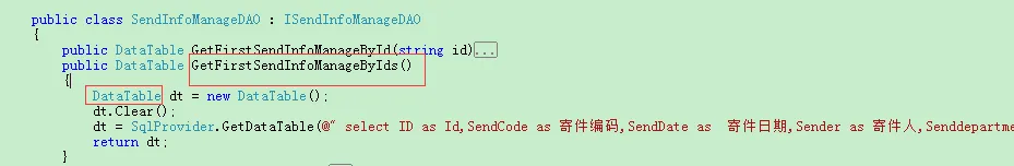 ①发现项目里面接口方法返回DataTable是带参数的,所以新增了一个无参数的方法