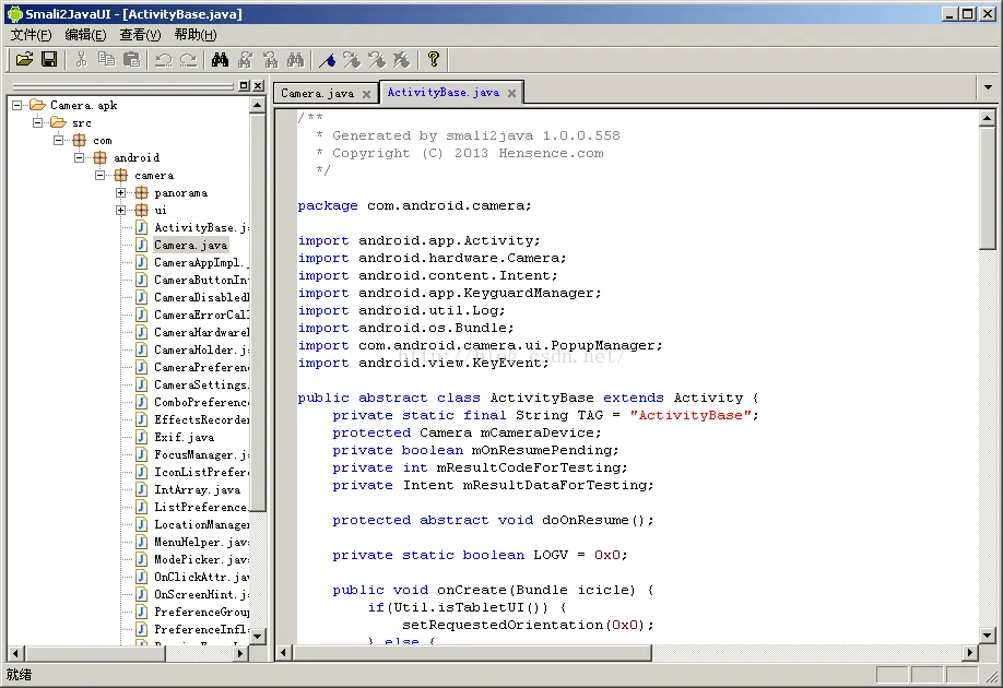smali2java是一个将smali代码反编译成java代码的工具。 什么是smali?smali是将Android字节码用可阅读的字符串形式表现出来的一种语言,可以称之为Android字节码的反汇编语言。使用baksmali或apktool可以将Android应用程序包(apk或jar)反编始的java代码。还原出的java代码将具有原始的变量命名,代码的顺序也与原始的java代码保持一致。因此,本工具也具有局限性,仅适用于带有行数和变量别名信息的smali文件(java编译器的编译选项可以在生成的字节码中剔除这些信息)。 smali2java使用了apktool将Android字节码文件转换为smali文件。界面显示中使用了CCrystalTextView(作者:Stcherbatchenko Andrei)作为java语法高亮显示控件,在此向这些软件或代码的作者表示感谢。 示例:ActivityBase.smali(smali文件) ActivityBase.java(原始java文件)ActivityBase.java(smali2java生成的java文件)