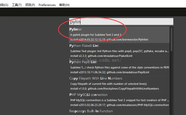 如下图所示:如安装pylinter 在搜索框内输入pylinter 单击,看下面显示安装完成。就可以在插件中找到了。