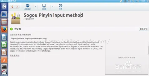 在Ubuntu14.01下可以直接点击下载的文件进入软件中心进行安装(这里的图是已经安装过的,没有安装过的按照Ubuntu的提示安装)。