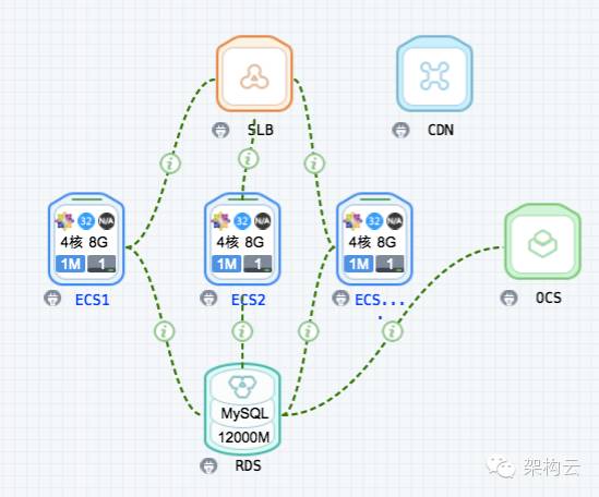 采用典型的三层架构,接入层—负载均衡SLB,应用层—虚拟机ECS,数据层-数据库RDS。
