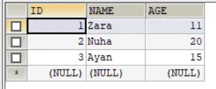 CREATE TABLE Student( ID INT NOT NULL AUTO_INCREMENT, NAME VARCHAR(20) NOT NULL, AGE INT NOT NULL, PRIMARY KEY (ID) );