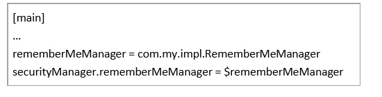 应该注意到,默认基于 cookie 的 RememberMeManager 实现不符合你的需求,你可以插入任何你喜欢的插件到 securityManager 当中,就像你配置任何其他对象的引用一样: