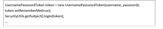 要有计划性地使用 rememberMe,你可以在一个支持该配置的类上把它的值设为 true。例如,使用标准的 UsernamePasswordToken: