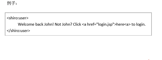 我们使用 shiro 前缀用以表明 shiro 标签库命名空间,当然你可以指定任何你喜欢的名字。 现在我们将讨论每一个标签,并展示它是如何用来渲染页面的。