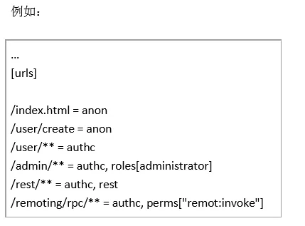 [urls]项允许你做一些在我们已经见过的任何 Web 框架都不存在的东西:在你的应用程序中定义自适应过滤器链来 匹配 URL 路径!