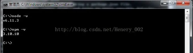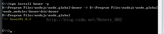 C:\>npm install bower -g (-g指安装到node_global文件夹中,-g前有一个空格)