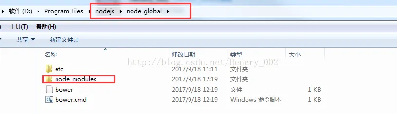 安装成功后,将看到node_global文件夹下新增文件夹 node_modules>bower