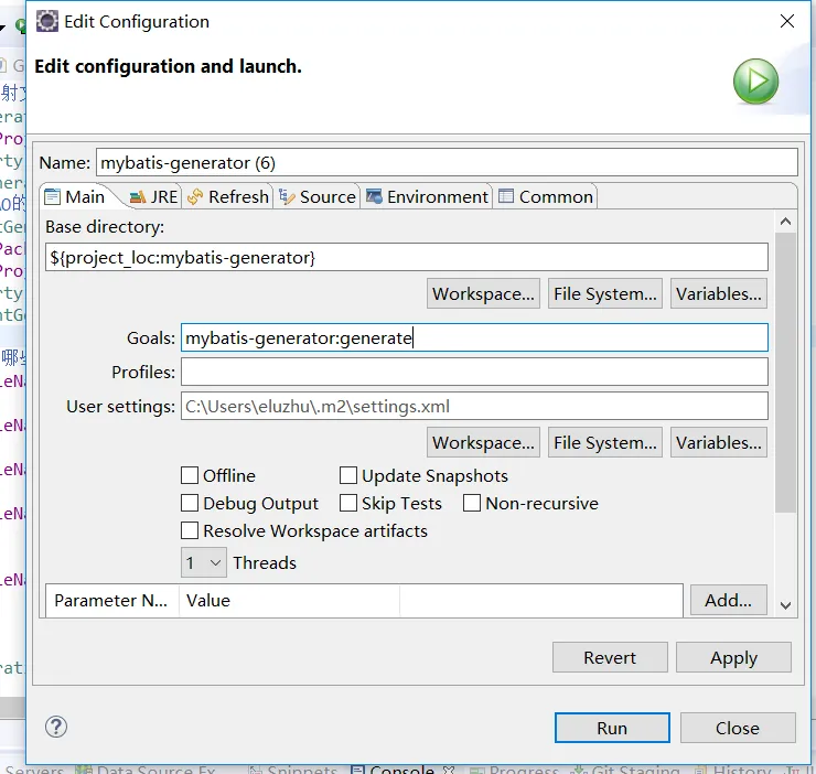 三、右击进入run as 点击maven build 如下图输入:mybatis-generator:generate