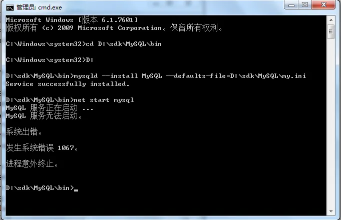 2、安装windows服务(Windows7 用户必须以管理员启动cmd):