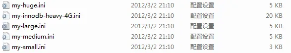 解压mysql-5.5.22-win32.zip后的目录中有5个my-xxxx.ini配置文件,