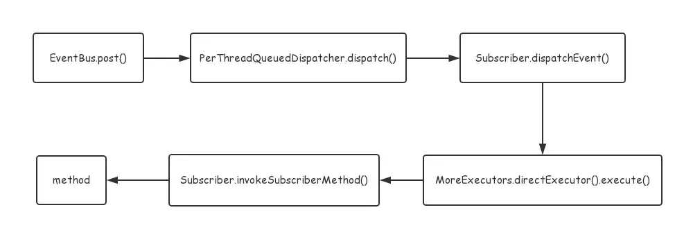 从字面上看,AsyncEventBus是异步的EventBus,那么EventBus应该就是同步的了。EventBus的executor为MoreExecutors.directExecutor(),其实现如下: