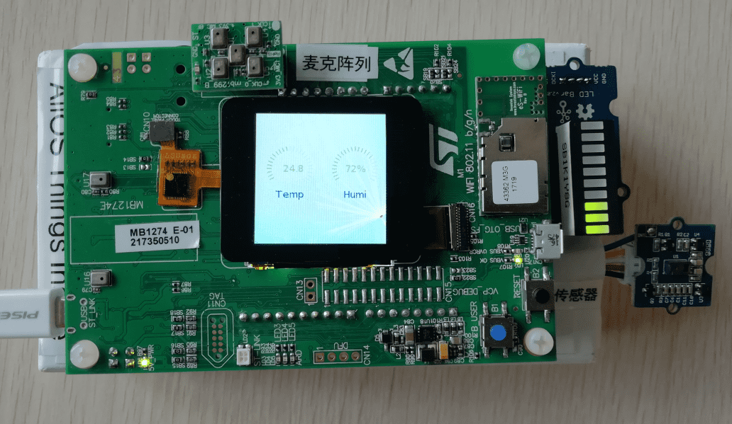 手势识别传感器和温湿度传感器均为标准I2C接口,连接到STM32F413H的I2C2上,通过slave address区分。