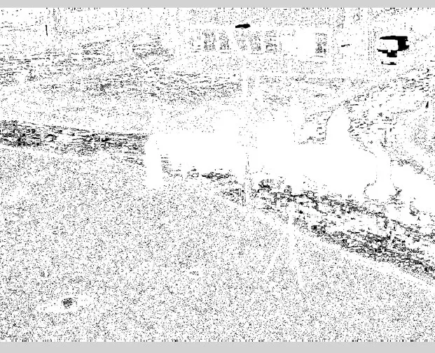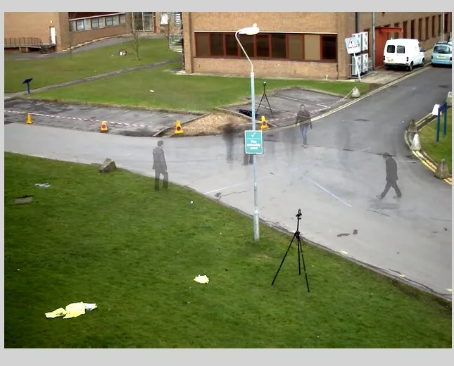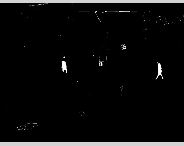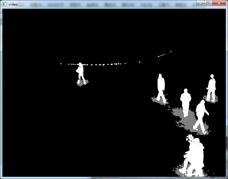 使用第0帧和平均值求absdiff,可以看到那个标识牌是很明显地被认为是前景了。这个效果应该不是太好。