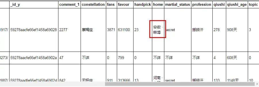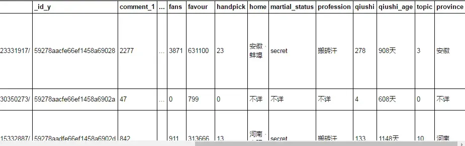 上回说到糗事百科段子的分析,今天对另外一张表,也就是用户信息表的分析。
