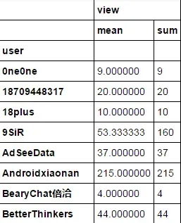 jianshu.groupby(jianshu.index)[['view']].agg(['mean','sum'])