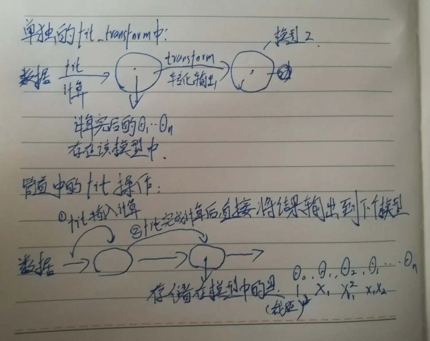 Transformer放在管道前几个模型中,而Estimator 只能放到管道的最后一个模型中。