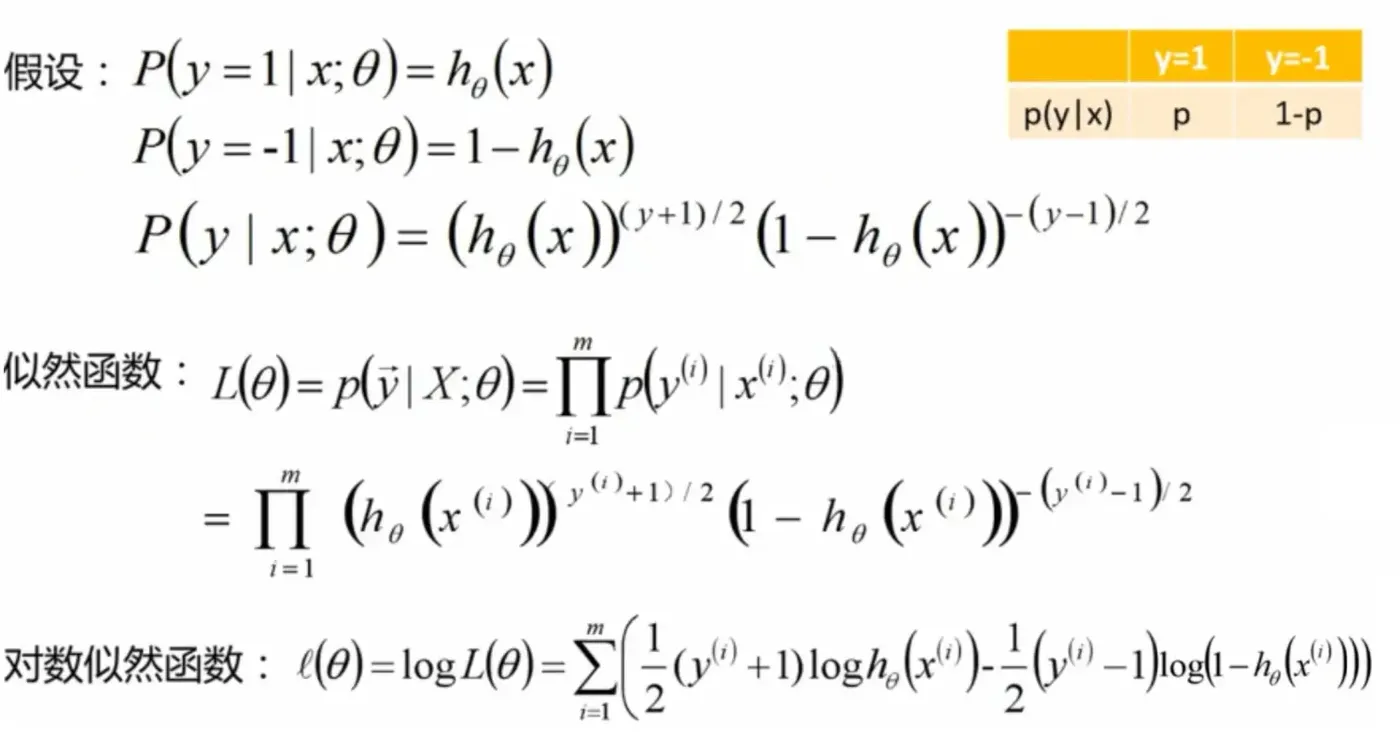 如果 [p: y=1] [1-p : y=-1 ]时,对应的似然函数和对数似然是什么?