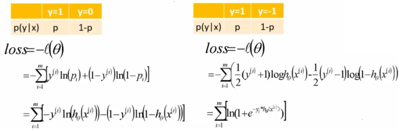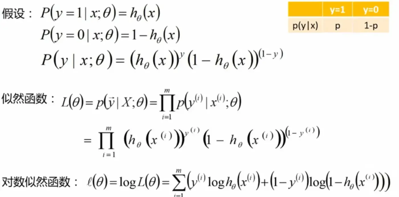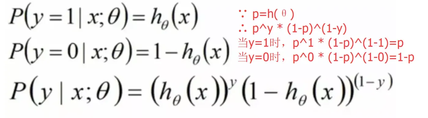 上面的公式是基于假设 [p: y=1] [1-p : y=0 ] 形成的。