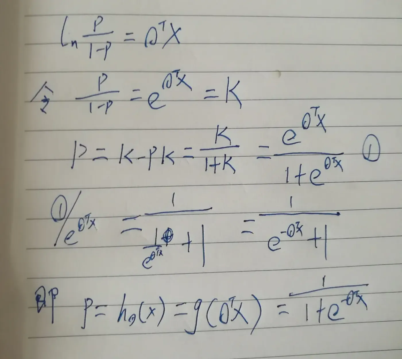 我们最终得到的是一个θTx 和p之间的映射。