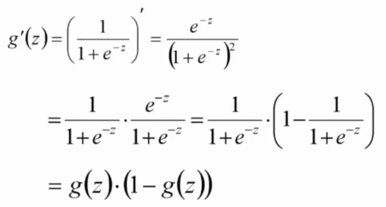 链式法则求导: g'(z) = g(z)*(1-g(z))