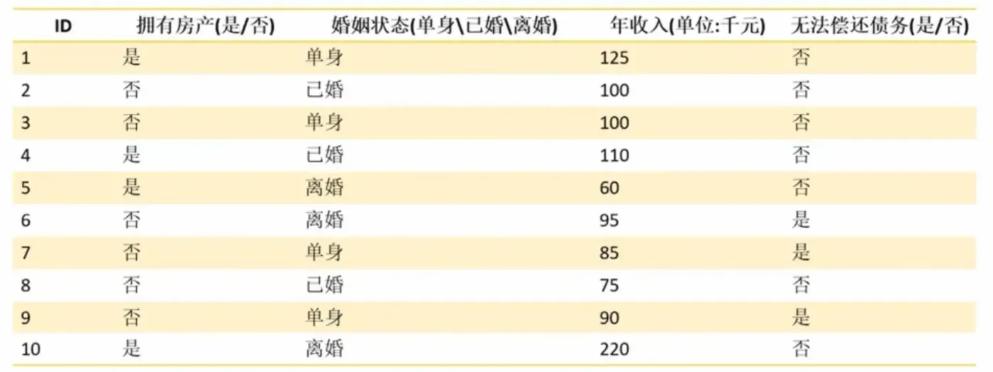 根据一个人是否有房产、婚姻情况、年收入情况判断一个人是否有能力偿还债务。
