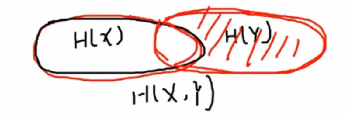 事件(X,Y)发生所包含的熵,减去事件X单独发生的熵,即为事件X发生前提下,Y发生“新”带来的熵。