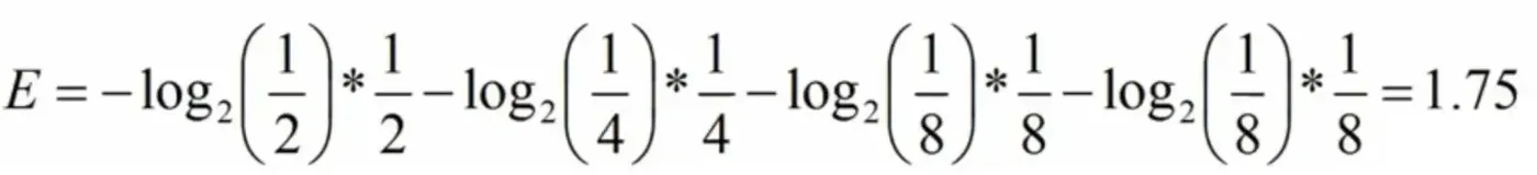 = -0.5 × log2(0.5) - 0.25 × log2(0.25) - 0.25×log2(0.25)
