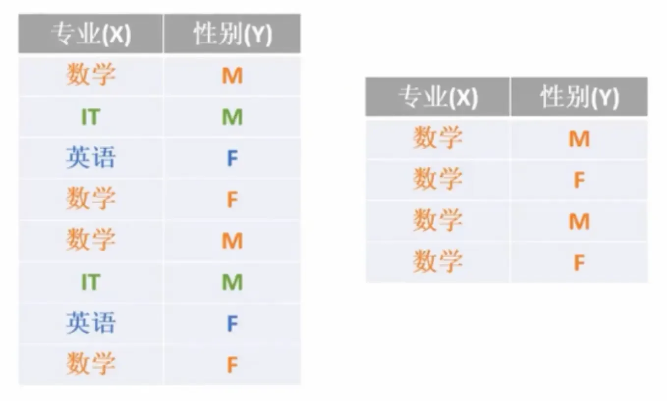 H(X, Y) = L(X=数学, Y=M) + L(X=IT, Y=M) + L(X=英语, Y=F) +