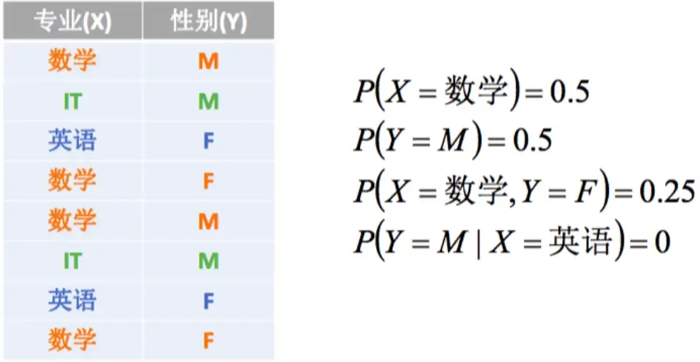 H(Y|X=数学) 是 H(Y|X) 的一部分,H(Y|X)还包括H(Y|X=IT)、H(Y|X=英语) 根据上述的方式能够依次计算出H(Y|X=IT)、H(Y|X=英语) 的值。
