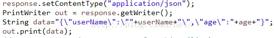 response.setContentType("application/json")+PrintWriter来将返回的bean、String、map对象转换成JSON格式,再输出到页面上;