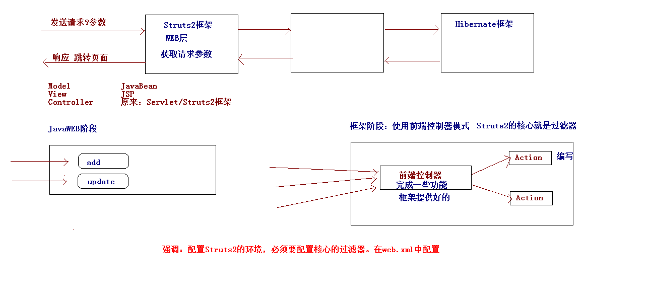 * Struts2的前端控制器就是一个过滤器,那么过滤器相关知识咱们都学习过,需要在web.xml中进行配置。