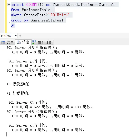 当然这SQL的执行效率还算不错,CPU时间是622毫秒,执行总时间是130毫秒,