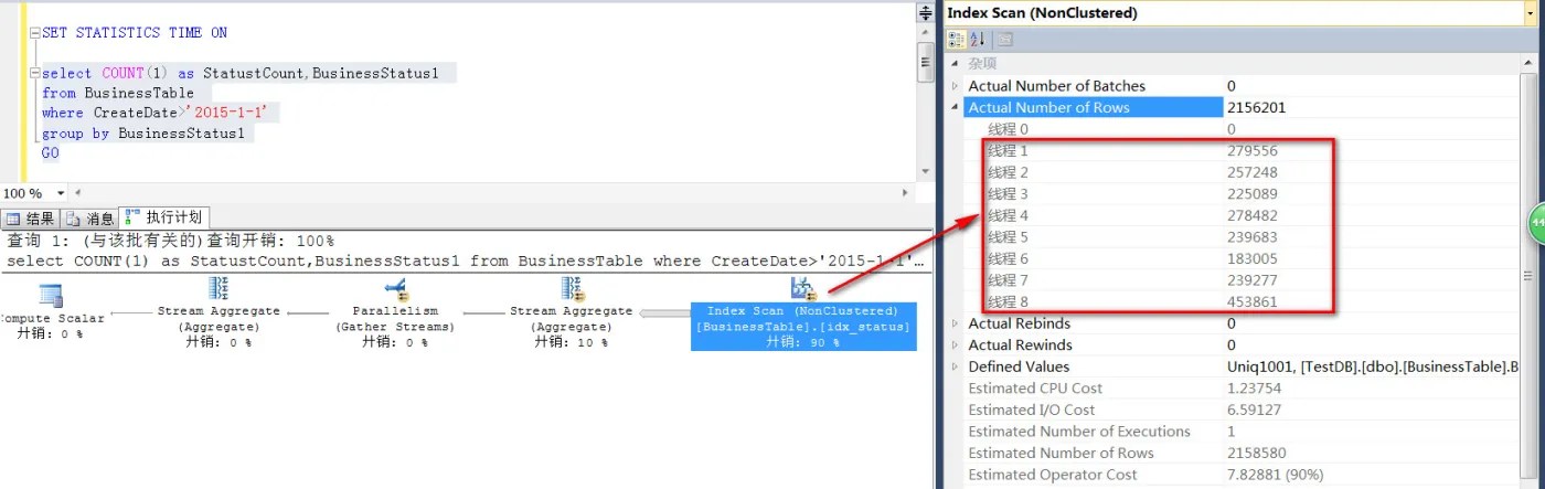 SQL Server查询引擎会采用并行的方式,也即采用多颗CPU参与整个运算过程,每颗CPU“分担”一部分计算任务,最后汇总合并各个CPU的计算的一种行为