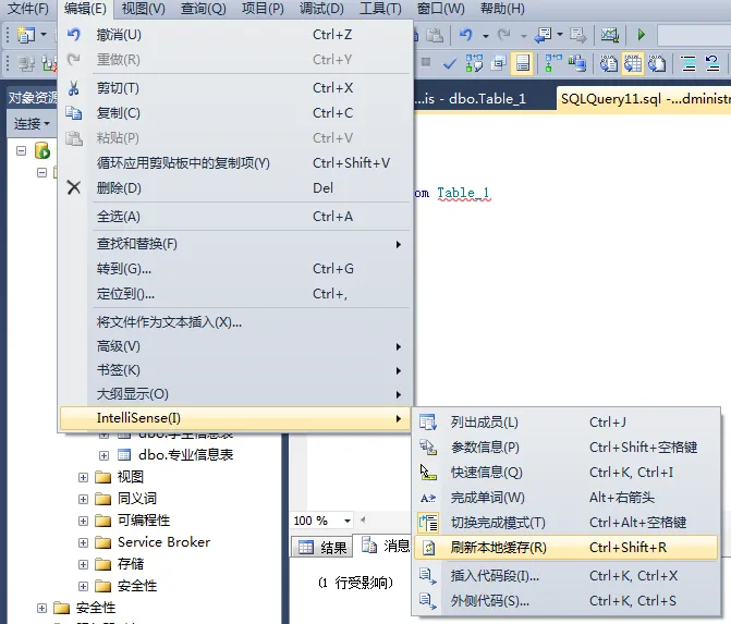 选择“编辑”——“Intellisense”——“刷新本地缓存”