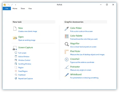 PicPick具备了截取全屏、活动窗口、指定区域、固定区域、手绘区域功能,支持滚动截屏,屏幕取色,支持双显示器,具备白板、屏幕标尺、直角坐标或极坐标显示与测量,具备强大的图像编辑和标注功能。
