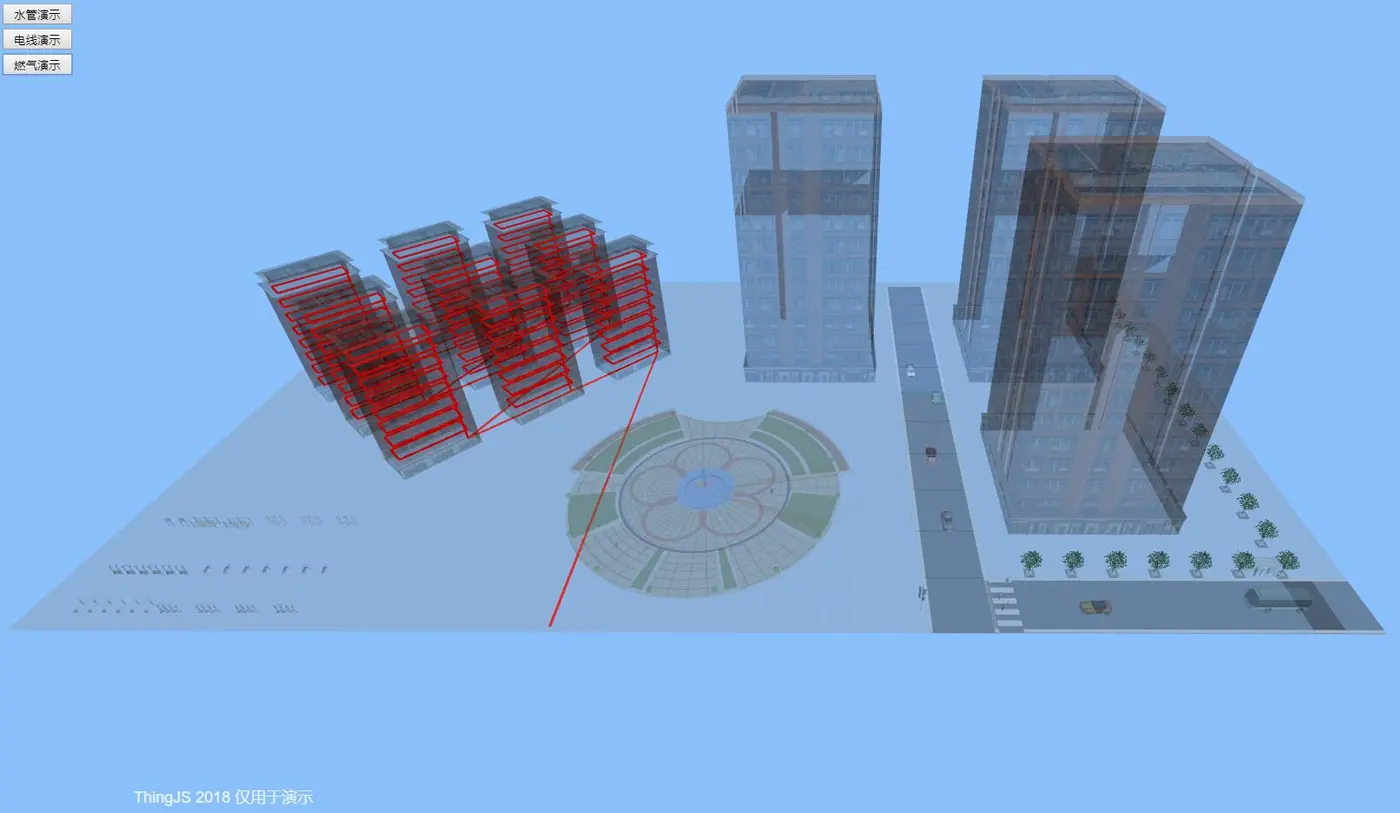 现实中社区管线远比DEMO中复杂,开发者可以根据自身业务实际,使用ThingJS开发出更多三维可视化应用。