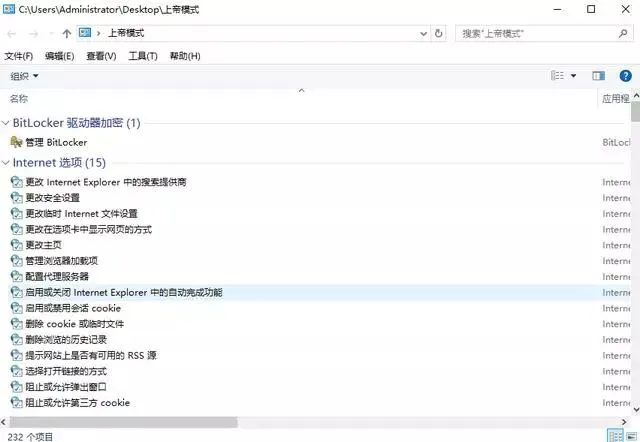 win10的上帝模式就是win10的全部功能展示模式,因为功能太强大,所以被戏称为“上帝模式”。
